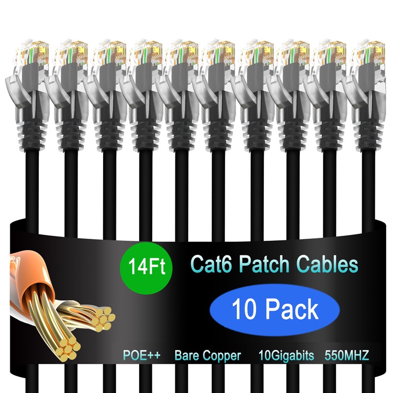 Lysymixs Cat6 Ethernet Patch Cable 14 ft (10 Pack), Cat6 Patch Cable for Data Centers, Cat 6 Patch Cable 10G, Network Patch Cables for Home and Enterprise Network -Black