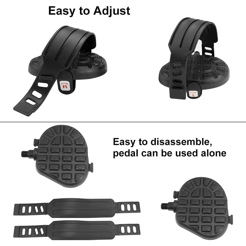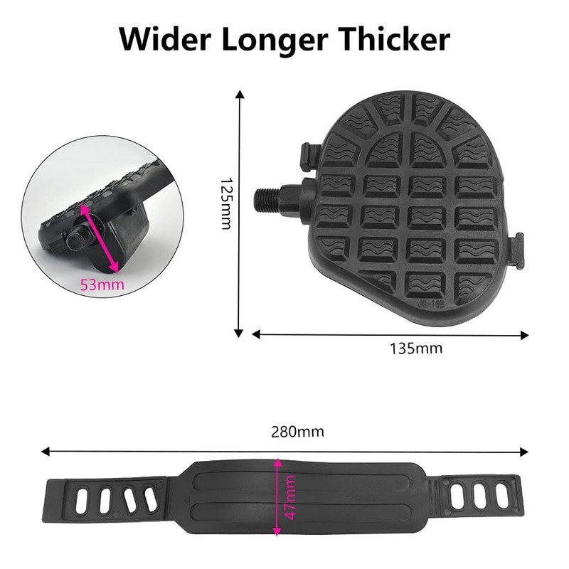 - 🚲 High-quality & Sturdy Material: The Bike Pedals comes with a pair of adjustable straps. The pedals are PP and the straps are PVC. They are high-quality, safe and non-toxic, light, strong, not easy to break,durable, and can be used for a long time, suitable for your intense cycling exercise.