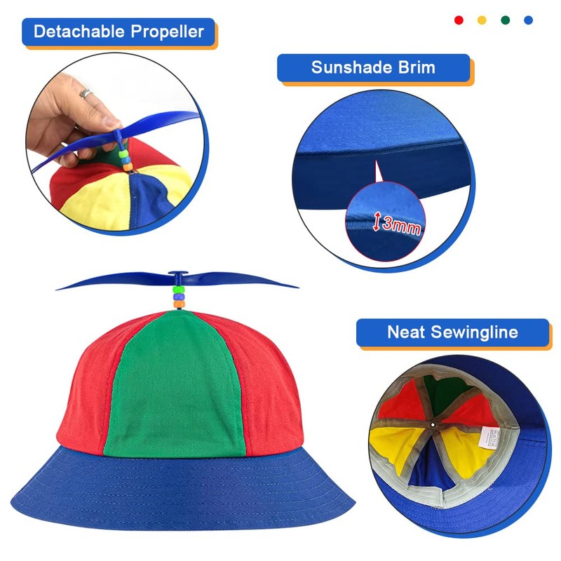 - Movable propeller design: colourful patchwork hat has a rotating propeller. The propeller is excellently crafted and can be gently rotated with the breeze. Even the wind generated during normal walking can make it turn and make your hat more eye-catching