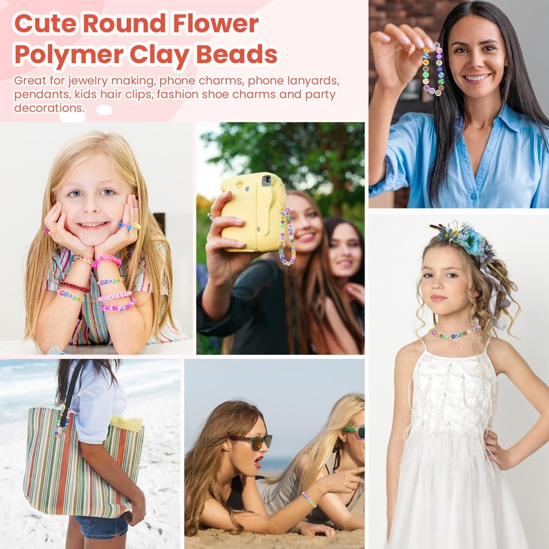 - Safety polymer clay material: these colourful round flower beads for crafts are made of high-quality polymer clay, the texture is softer than ordinary ceramic and the surface layer is made of non-toxic and odourless paint, the colour is bright and even. and can be reused for a long time, it is exquisite jewellery accessories.