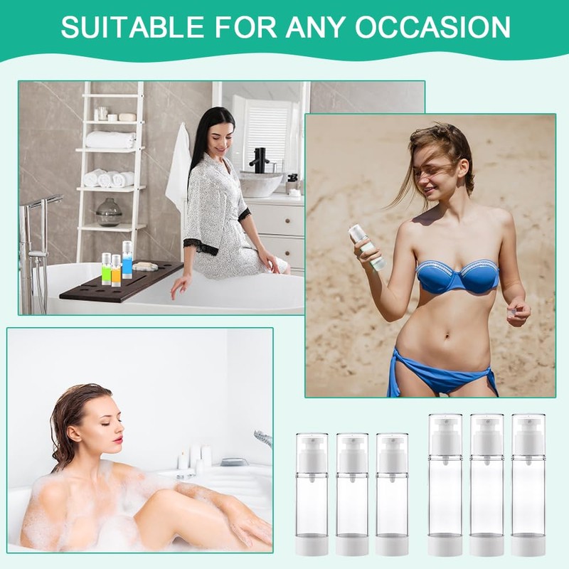 - Perfect lotion dispenser bottle for on the go: with the airless pump dispenser for lotions, face creams, gels, moisturisers, water creams, lotions, serums, moisturisers, DIY foundations, DIY skin care cosmetics and more can be dispensed with. Whether it's a long-haul flight or a short trip, you don't have to carry large bottles of cosmetics, skincare products and other personal care products, reducing your luggage load.