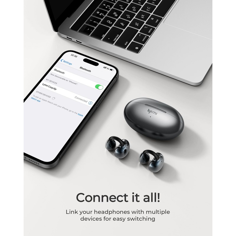 Lytmi-CozyClip Open Ear Headphones, Wireless Clip-On Earbuds, Bluetooth 5.4, Lightweight, Stable Fit, Robust Bass, 22H Playtime, Dual-Device Connections, IPX4 Waterproof for Workout and Fitness