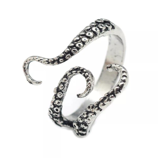LZD Alloy Cuff Finger Ring Squid Antique Silver Size 8 Adjustable 18mm P415