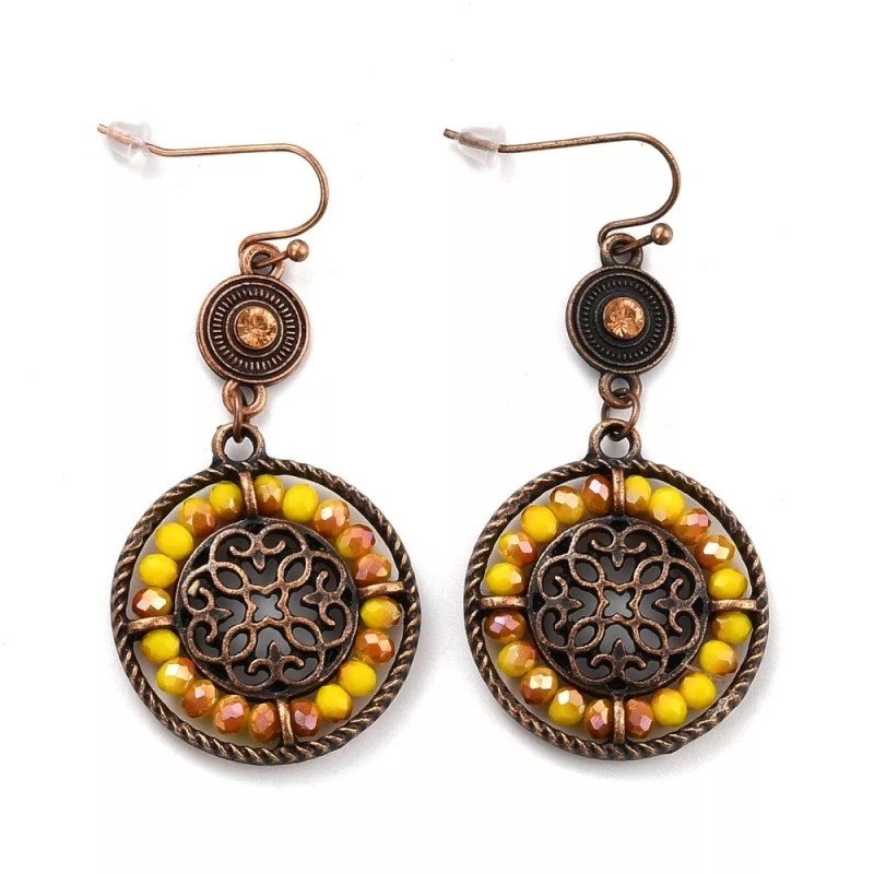 LZD Bohemia Earrings Long Dangle Drop Yellow Bead Vintage Red Copper Fish Hook E17