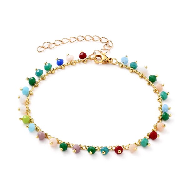LZD Rondelle Glass Charm Bracelet Gold Plated Stainless Steel Lobster 7.6" Z165