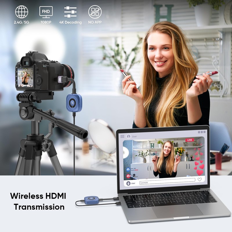 - 【Top-Notch Performance】This wireless HDMI extender comes with 2.4G/5G dual-band frequency to ensure fast and stable signal transmission.With only 0.1S delay, truly achieving real-time streaming.