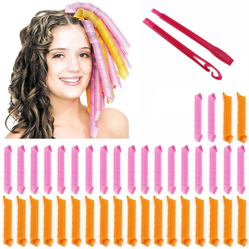LZLRUN Super Long Magic Spiral Ringlet Curls Hair Roller Curler Styling Kit DIY No Heat Wave Formers with Styling Hooks - 40pcs & 45cm