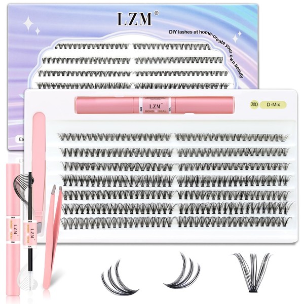 - Large capacity of the set: the LZM eyelash extensions set contains 168 eyelash clusters, eyelash glue lash bond and seal tweezers for your DIY eyelash needs at home. The 168 lashes correspond to 15 pairs of strip eyelashes. In addition, the cluster lashes are reusable and can be worn up to 3 times with proper care.