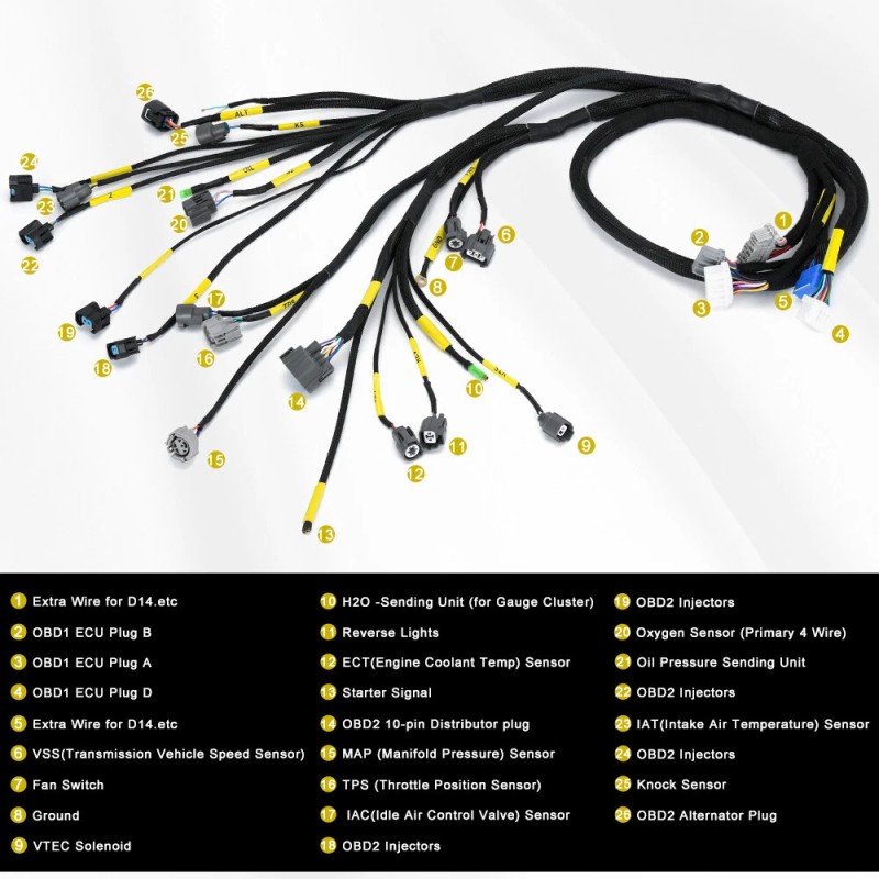 LZONE Manual OBD2 Engine Wiring Harness Complete For Honda Civic Integra B16 B18 D16