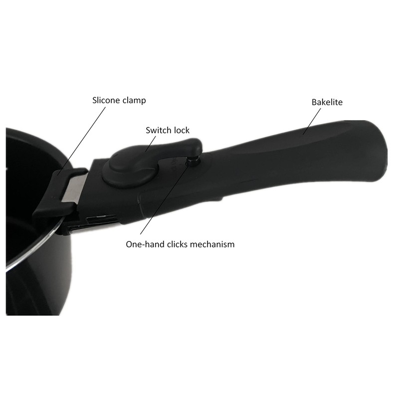 Brandlzteck MaterialBakelite/Silicone/Stainless Steel Insert ColourBlack/Black Handle Dimension 20 x 4.5 x 5.5 cm 7.87×1.77×2.16 inches; Item Weight0.18 Kilograms Dishwasher safeYes but not recommend Package included: 2 × Removable Pot Handle Specification: Material: bakelite, silicone chuck Size: 40x60x194mm Compatible with flanging pot thickness: 1.8-2.5mm. compatible with all Ingenlo cookware. Steps for open: Press the button of the protection switch, the chuck will pops out, the chuck can be separated from the pan body. Steps for attach: Turn the switch to the close position. Included: 2 x removable pot handle(pot is not included)