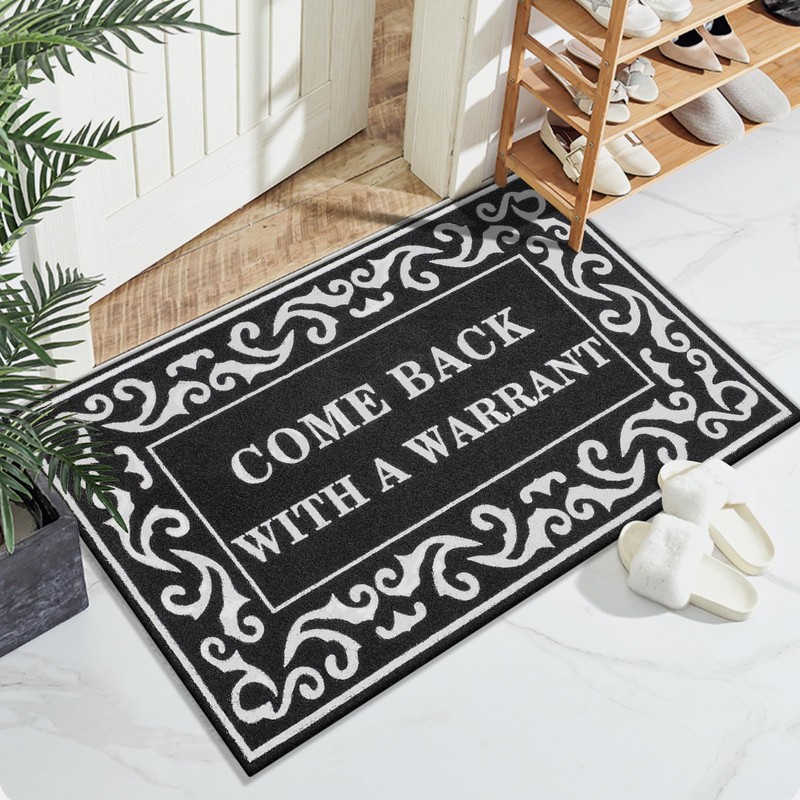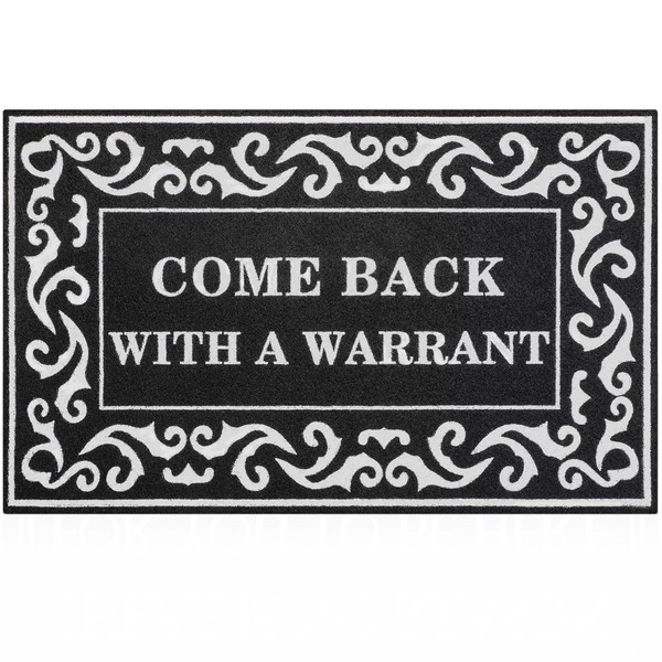 - FUNNY WELCOME DOORMAT:The Come Back With A Warrant door mat is a funny quip aimed at unwanted guests knocking on your door. With an blend of exquisite printing and humorous or light-hearted pattern, this come back with a warrant welcome mat make everyone burst into laughter.