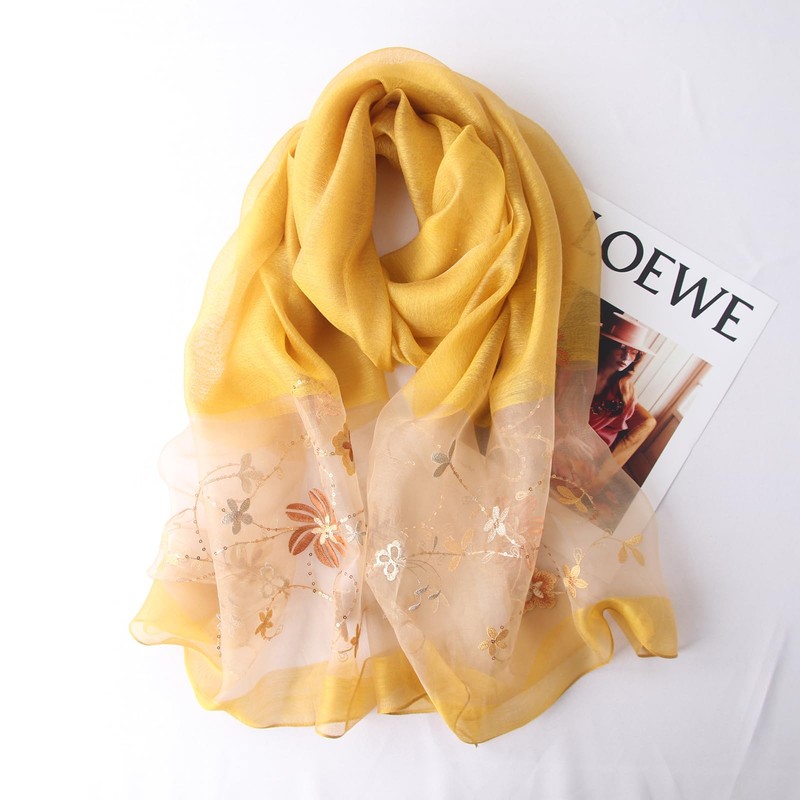 Lzylvta Silk Wool Scarf Elegant Soft Scarf Shawls and Wraps for Weddings Embroidered silk scarf Shade Scarves for Women (Yellow)