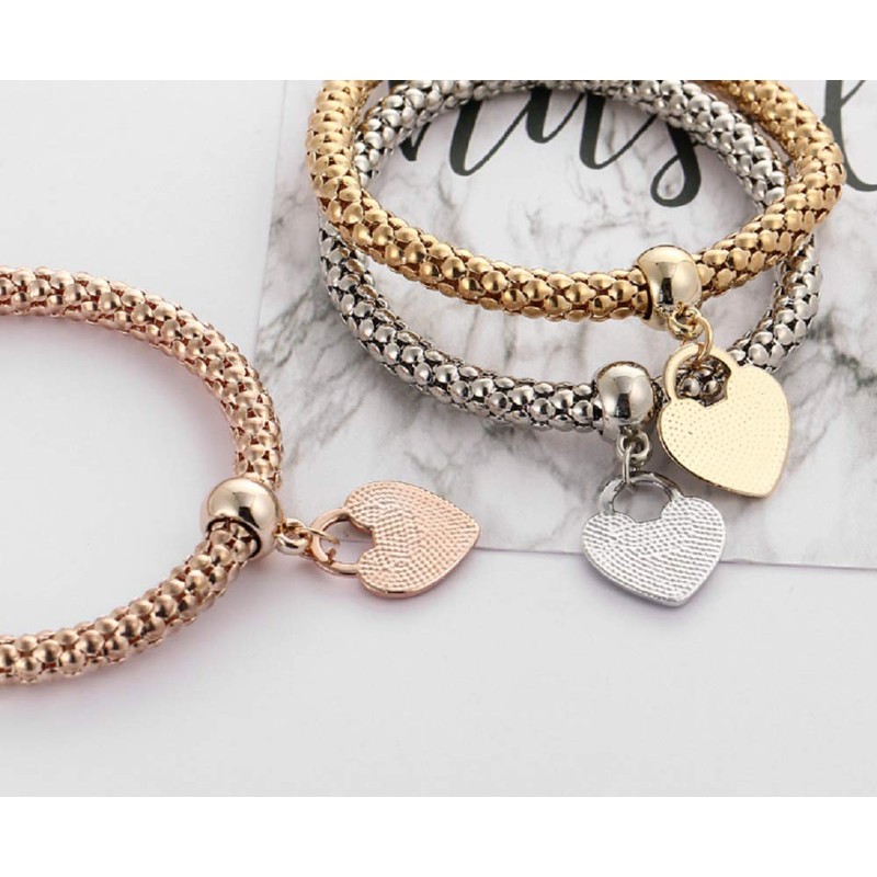 Lzz Fashion Lady Stretch Bracelet 3PCS Gold/Silver/Rose Gold Corn Chain Crystal Pendant Cubic Zirconia Love Pendant Multilayer Bracelet Set