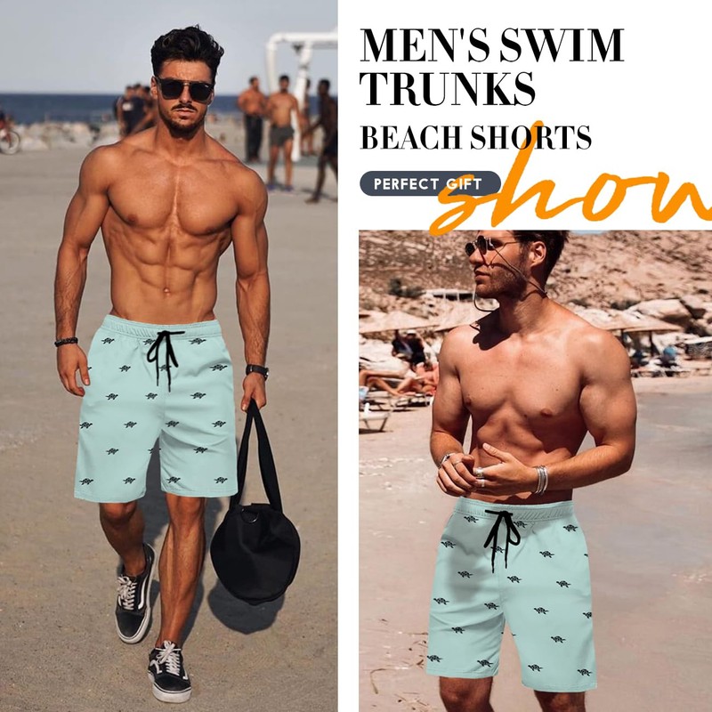 Lzzidou Men's Swim Trunks Mesh Lining Bathing Suit Quick Dry Board Shorts Turtle