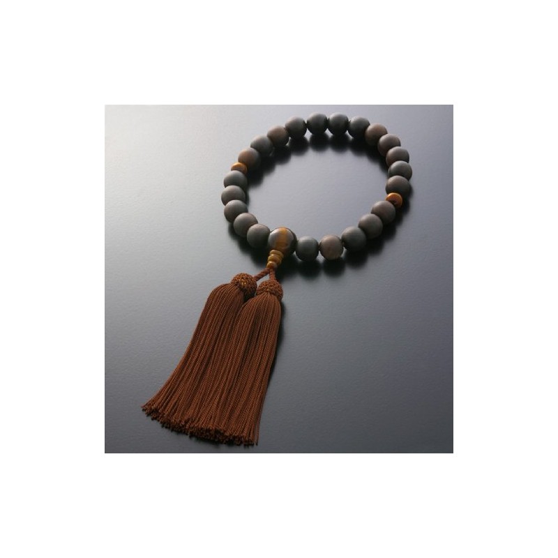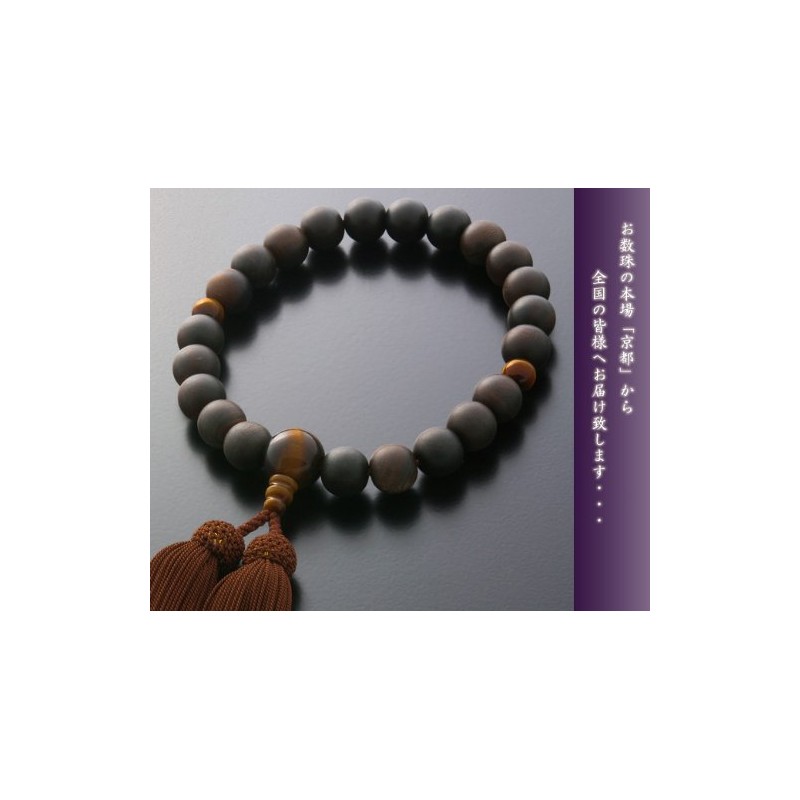 京仏壇はやし 数珠 男性用 正絹 頭房 黒檀 (素挽き) 虎目石仕立て [ タイガーアイ ] 【 数珠袋セット 】 M-072 京都 念珠 すべての宗派でお使いいただけます