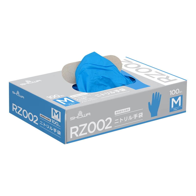 [ショーワグローブ] ニトリル手袋 (パウダーフリー) ニトリルゴム製使いきり手袋 Mサイズ ブルー 100枚入 RZ002