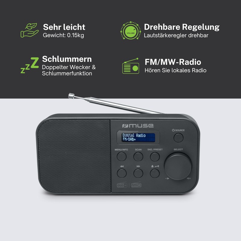 - Compact and portable: small digital radio with built-in speaker for home and travel, can receive with DAB+ and FM - ideal for bathroom, office and kitchen.