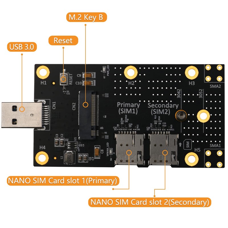 M.2 to USB 3.0 Adapter, Push Connector for Dual SIM Card Slot Computer 3G 4G 5G Module, Supports Dual SIM Card Push Connector