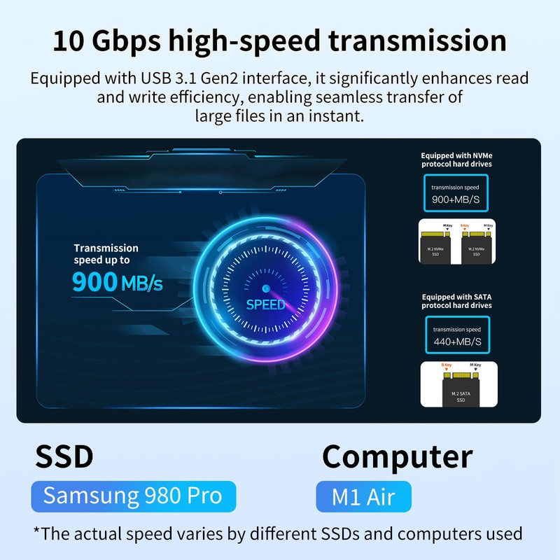 - 【Mini M.2 SSD Reader】Made of ABS high-strength engineering plastic, it features a simple and lightweight structure. The silicone non-slip pad at the bottom ensures stable desktop use. It supports on-the-go data backup, serving as an optimal solution for M.2 SSD data migration and backup—a professional external storage solution balancing portability and durability.