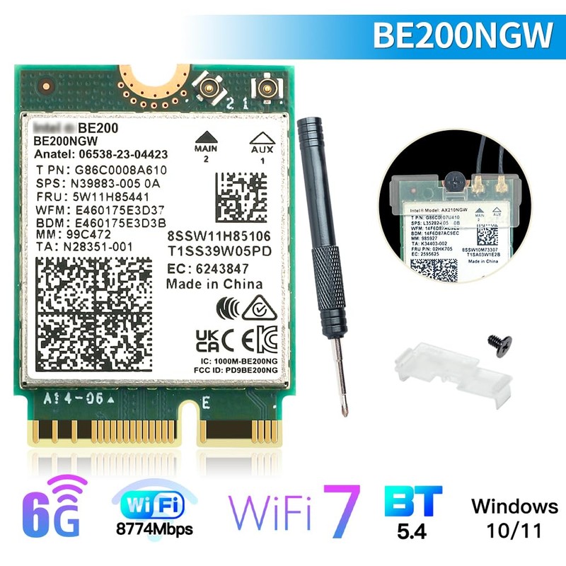 - In theory, this WiFi 7 BE200NGW Adapter on 320MHz channels allows devices to enjoy higher single-device throughput. WiFi 6 can achieve a maximum of 160MHz, and WiFi 7 directly doubled, so that the access of digital devices can have greater wireless throughput capacity. Faster speed and lower latency. WiFi 7 can support data transmission rates of up to 30Gbps, which is equivalent to three times that of WiFi 6 and can meet the use of high bit rate 4K/8K video, VR/AR applications, remote working, video conferencing, and cloud computing scenarios.