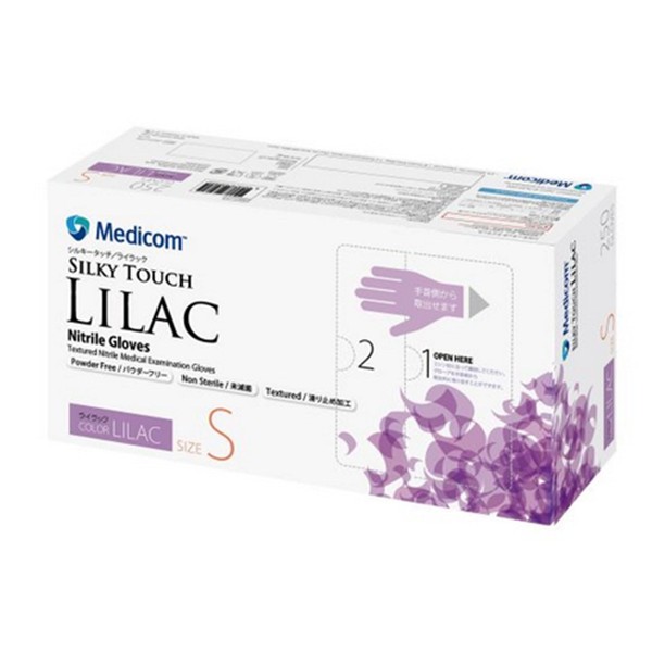 [メディコムジャパン] 使い捨て手袋 シルキータッチ ライラック Mサイズ 250枚入 ラテックスフリー パウダーフリー 滑り止め 料理 食器洗い 厚手 介護 エンボス 炊事 家事 軽作業 左右兼用 伸縮 介護 ペット 汚物処理 衛生処理 薄手 素手 簡単取り出し JN131172C