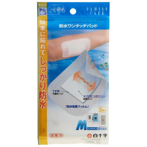 白十字 防水ワンタッチパッド M 5枚 大判 絆創膏 一般医療機器