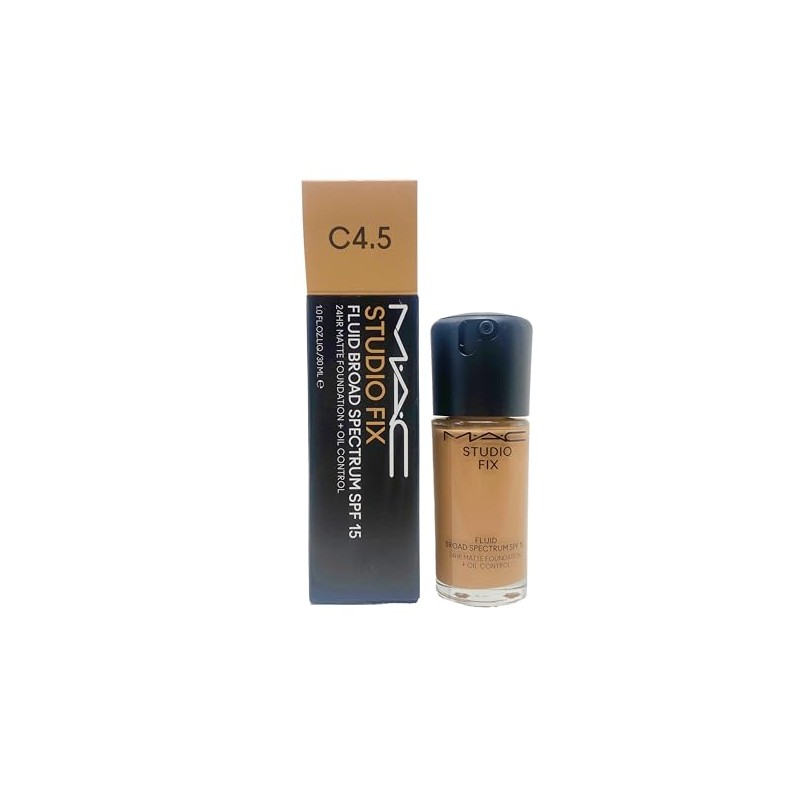 M.A.C Studio Fix Fluid Broad Spectrum SPF 15 24Hr Matte Foundation + Oil Control - C4.5 (Tanned neutral beige with peach undertone for medium skin) 1 Fl Oz/30 mL