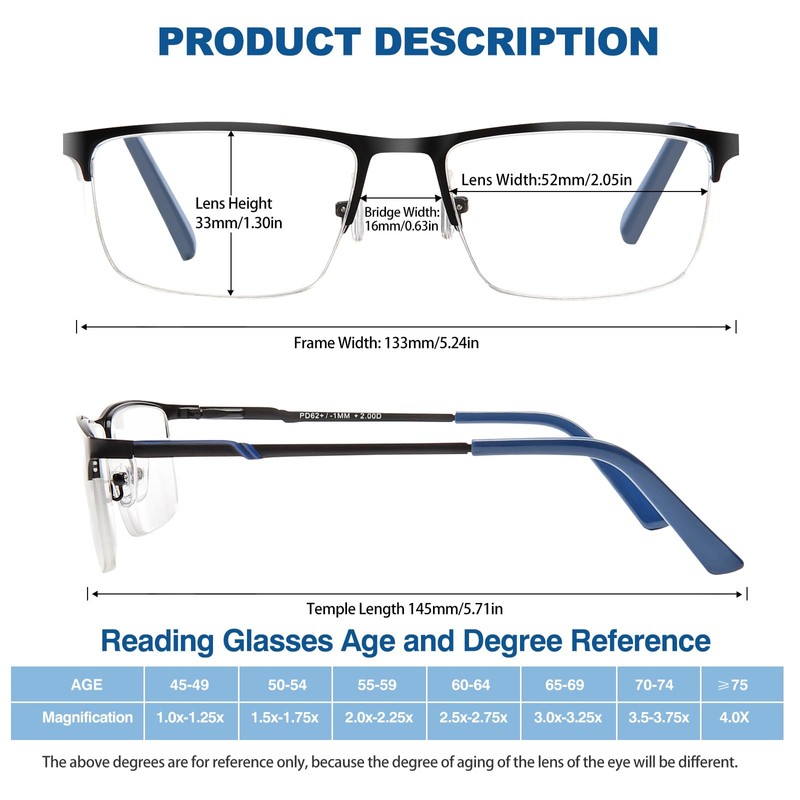HD lens: . Our lens with good transmittance, accurate degree configuration, easily read small text, bright you better viewing experience.