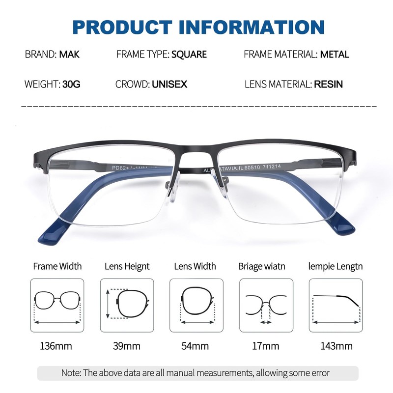 - Premium material: M.A.K reading glasses apply 1.0mm stainless steel metal frame and temples, durable acrylic lens, high quality PC temples.