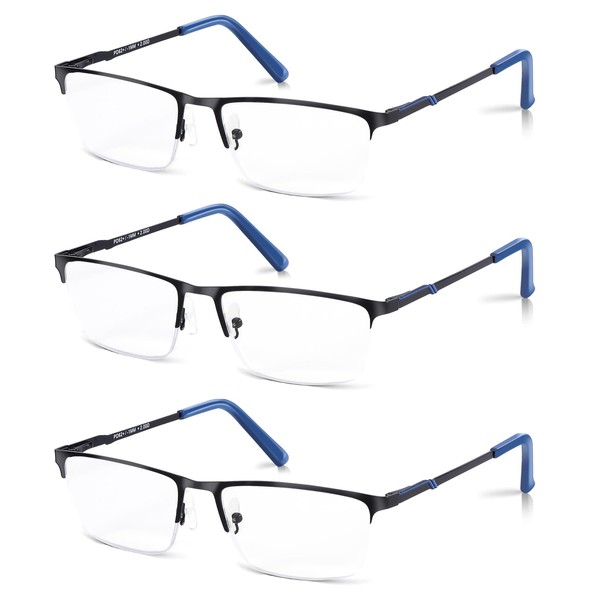 M.A.K 3pcs Reading Glasses Men, Metal Blue Light Blocking Readers, Spring Hinge Computer Readers Eyeglasses (Black, 2, x)