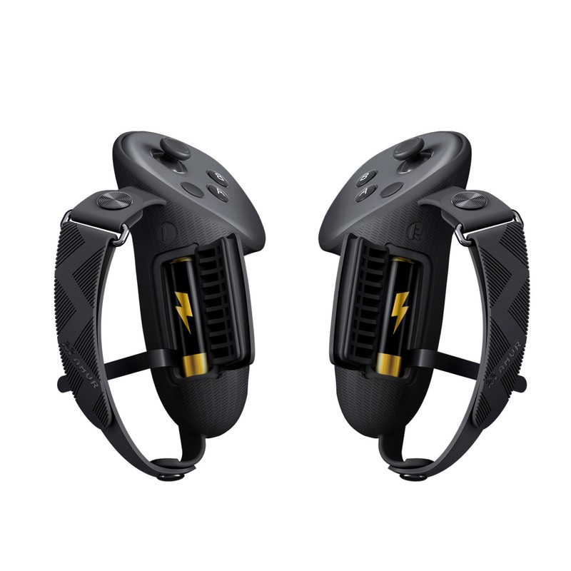 - Easy Installation and Removal: The one-piece design of the controller grip compatible with Quest 3 makes it easy to install and remove. The package included: 1 pair controller grip covers with knuckle straps, 1 pair battery compartment cover and 4 plastic battery pull tabs(Two of them are already mounted on the battery cover). Please Note: Batteries not included!