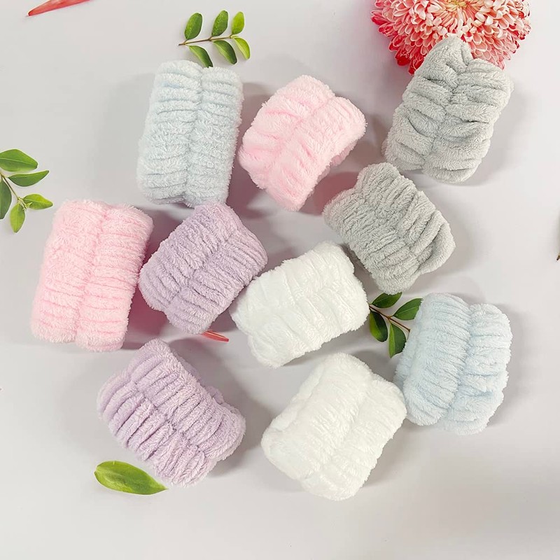 M-bestl 10 Pack Wrist Towels for Washing Face to Prevent The Water Drop Down from Arm,Microfiber Face Washing Wristbands(Pink,Blue,Gray,Purple,White