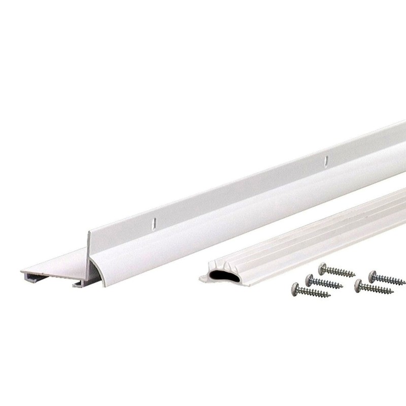 M-D Door Bottom Sweep, L-Shape, 1-3/8 in Width, 36 in Length, Aluminum/Vinyl, White, With Drip Cap. 36-Inch L-Shaped Aluminum Drip Cap And Door Bottom with vinyl seal. Screws Included. For Use With Saddle Threshold. Fits 1-3/8-Inch or 1-3/4-Inch Doors. Diverts Rainwater Away From Door. Designed to be used with smooth top thresholds to seal out drafts from the bottom of your door. Helps make your home more comfortable and saves energy.