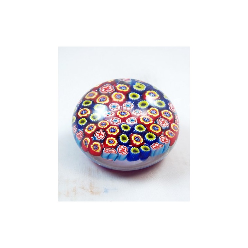 This lovely paperweight was handcrafted by skilled artisans who worked night and day to refine his skill. Each piece starts with a designated shape carefully formed by the artist. Through hard work and years of experience the artist creates various designs of vibrant colors and textures which engulf the surface each piece. Usually several layers of assorted colors and designs are rendered--overlapping one another. Once the piece nears the end of completion, it is finished with a clear coat of glass to give it an exquisite glimmering shine.