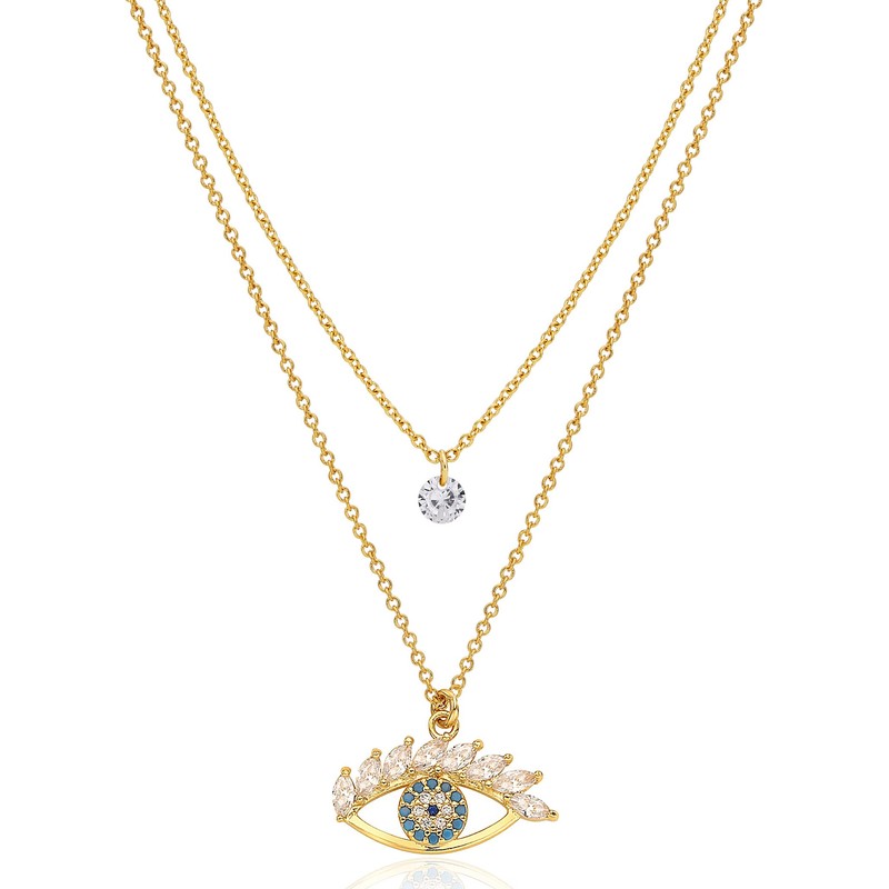 M.DUN - Evil Eye Necklace for Women - 14K Gold Plated Cubic Zirconia Blueeye Pendant Layered Jewelry Gift (1C0464-1)