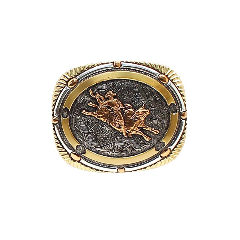 M&F Western 4 x 3 1/2 in Crumrine Bull Rider Barb Wire Border Belt Buckle