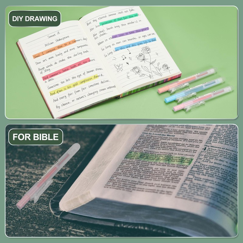 - 【Applicable】: Highlighter pen is a great tool for work, study and art making which can be easily used for , journaling, letter, card making, note taking, scrapbooking, crafts, coloring books, note-taking, underline, highlighting, drawing, invoice, books, exams, DIY alphabet etc. It can also be used for birthdays, Christmas and other holiday gift making, suitable for emphasize some important parts and draw some beautiful patterns. Suitable for classroom, home, and office supplies.