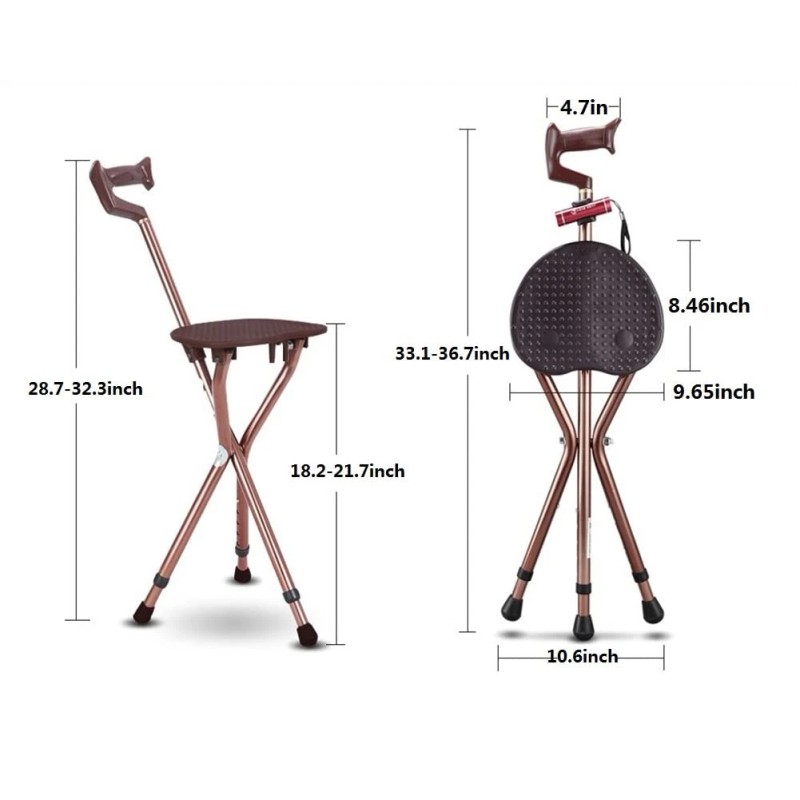 Cane Seat 441 lbs Capacity,Weight: 2.5lbs,Adjusting height range: Open Size: 28-32in Approximately; Fold Size: 32-36in Approximately.