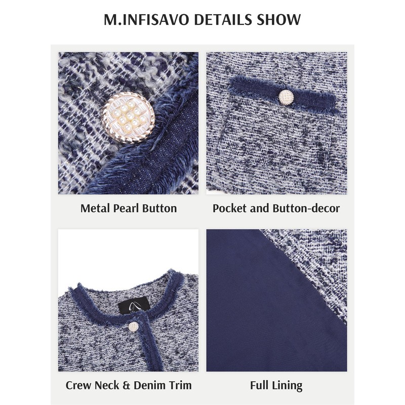 M.Infisavo Tweed Jacket Women Long Sleeve Open Front Fall Spring Winter Cardigan X-Large Denim Blue