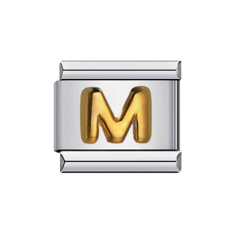 M Initial Letter Name Alphabet Gold Silver 9mm Italian Charm Compatible With Nomination Bracelet