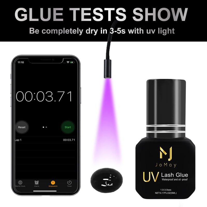 - Quick-Drying Formula: Our UV lash adhesive sets in 1 second, ensuring a fast and easy application process.