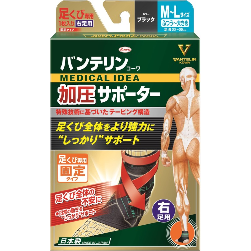 バンテリンコーワサポーター 加圧サポーター 足くび専用固定タイプ右足用 ふつう~大きめ/M~Lサイズ(足長 22~28cm) ブラック