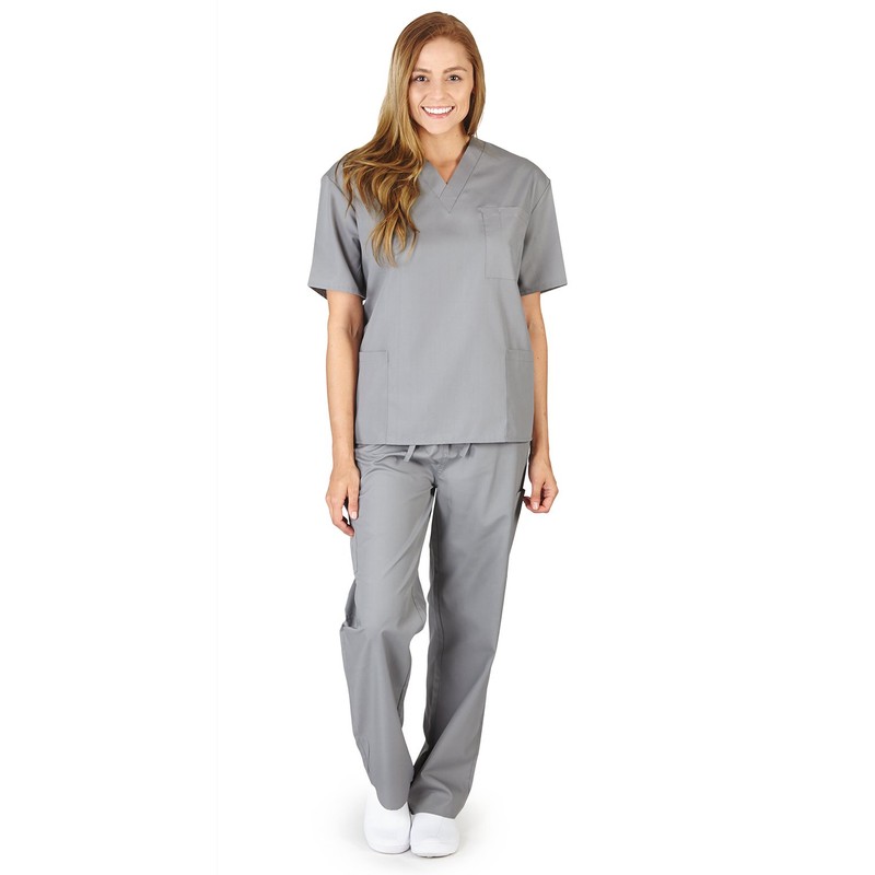 - DESING: Women's Scrubs Are Divided Into Two Parts. One Is Womens Tops And The Other Is Women's Pants. The V-neck Medical Scrubs Sets For Women Come With 1 Breast Pocket And 2 Lower Roomy Ones. The Bottoms Have 2 Side Pockets And A Lower Cargo Pocket. So You Can Easily Store Everything.