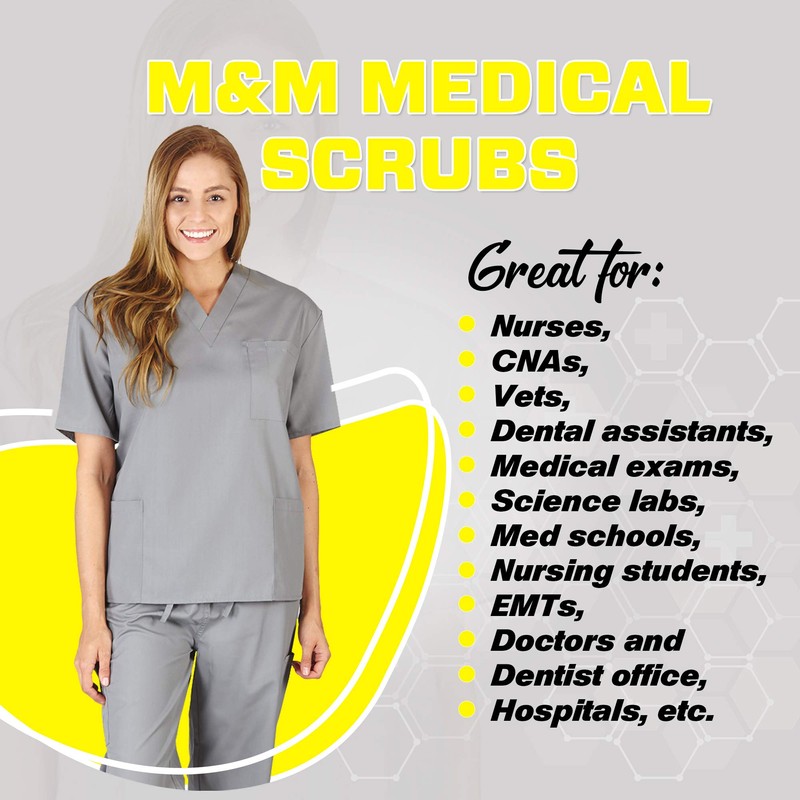 M&M SCRUBS Women Scrub Set Medical Scrub Top and Pants M Grey