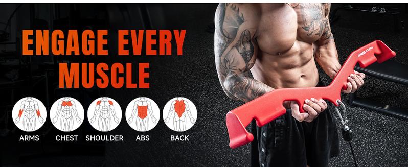 M MANUEKLEAR Lat Pull Down Bar with 6 Ergonomic Handles, Neutral Grip Lat Pulldown Attachments for Whole Back Training, Wide Grip Lat Pulldown Bars for Home Gym Cable - Color: Red