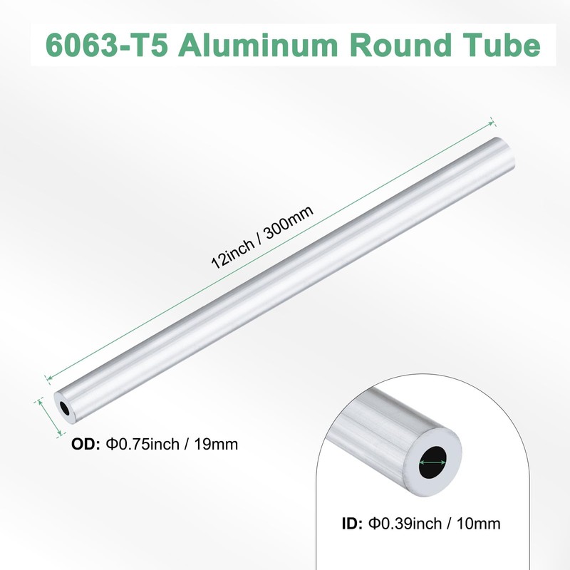 - [Size & Package] - Length: 300 mm/ 12 inch; Inner Dia.: 10 mm/ 0.39 inch; Outer Dia.: 19 mm/ 0.75 inch; Package Includes: 1Pcs x 6063 Aluminum Round Tubes