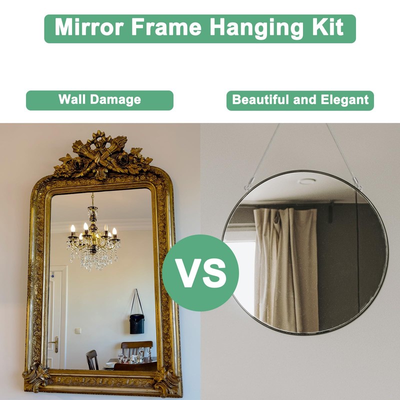 - [Advantage] - Our mirror hanging hardware is easy to use. The length of the metal rope can be manually adjusted. When using it, you only need to connect it to the hanging hook of the picture frame or artwork, and then adjust it to the appropriate length to hang it