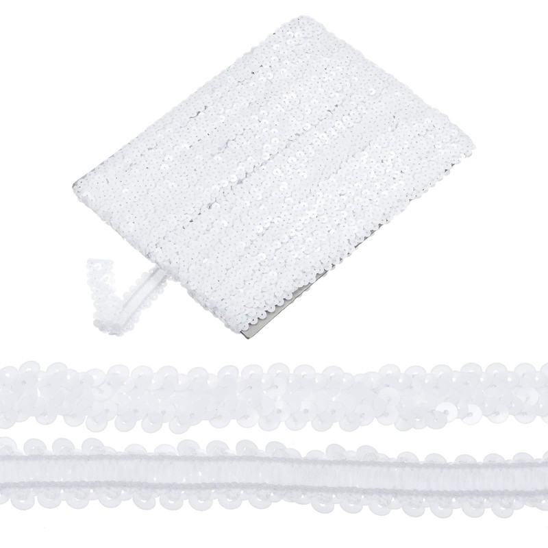M METERXITY 1-Pack Elastic Sequins Trim, 11 Yards 0.8 Inch Flat Paillette Glitters Sequin Trim 2 Row Metallic Sequins Trim for Craft Sewing Trimming/Dress Embellish Headband [White]