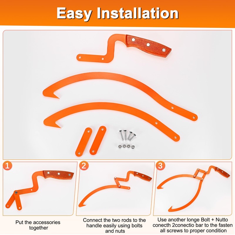 Simple to set up, connect the two rods to the handle using bolts and nuts, and attach the locking rods with long bolts and nuts—enjoy the convenience of log handling with ease.