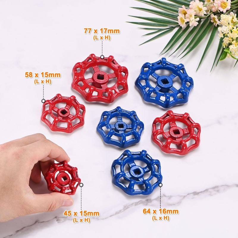 M METERXITY 1-Set Outside Faucet Handle, 7x7mm Paint Cast Iron Square Stem Hole Water Spigot Handle with Screws, Nuts & Aluminum Washer for Courtyard/Bathroom, Spigot Puller Replacement [Blue]